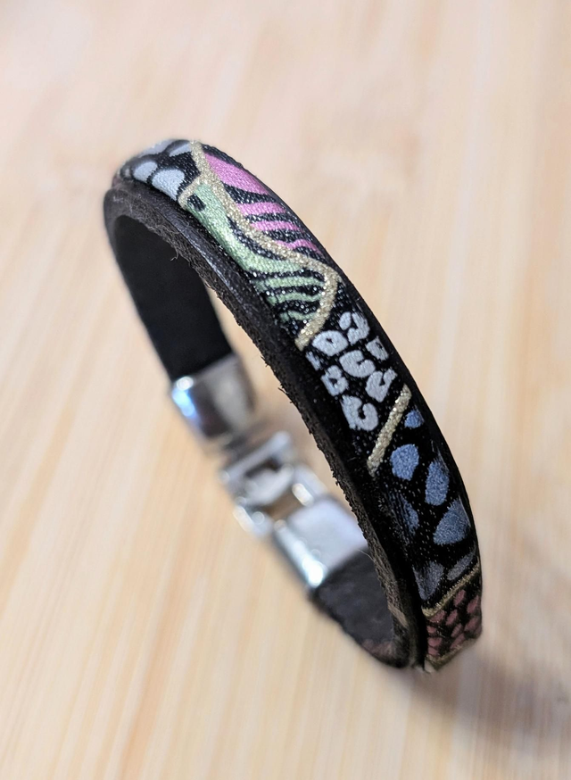 Bracelet en cuir véritable zgremented un ruban satiné multicolor