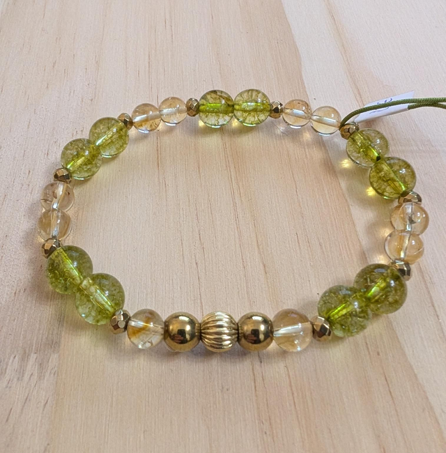 Bracelet en pierre naturelle d olivine de 8 mm et de citrine de 6 mm